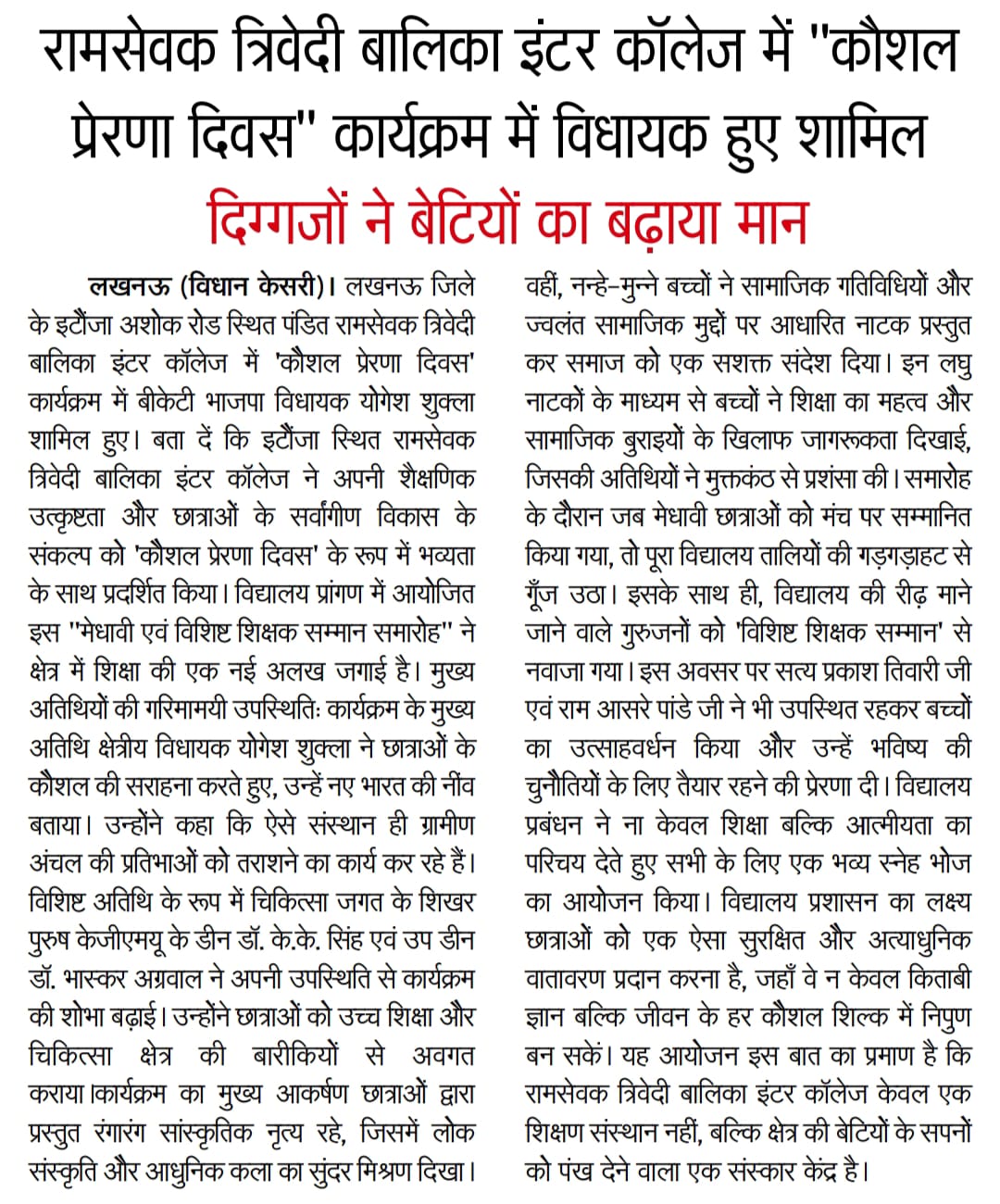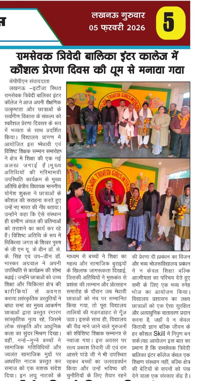 At Ram Sewak Trivedi Balika Inter College, we believe that education is more than just textbooks—it is about honoring our roots and fostering a spirit of excellence. On February 4th, our campus came alive with inspiration and pride as we celebrated “Kaushal Prerna Diwas”.